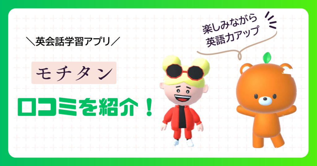 「モチタン」ってアプリが気になるけど、効果あるの? 高額課金をしないと使えない? モチタンに興味を持っていても、不安を感じる方は多いようです。英語学習アプリは数が多く、どれを選ぶべきか迷いやすいもの。この記事では、モチタンの特徴や口コミ、... -
