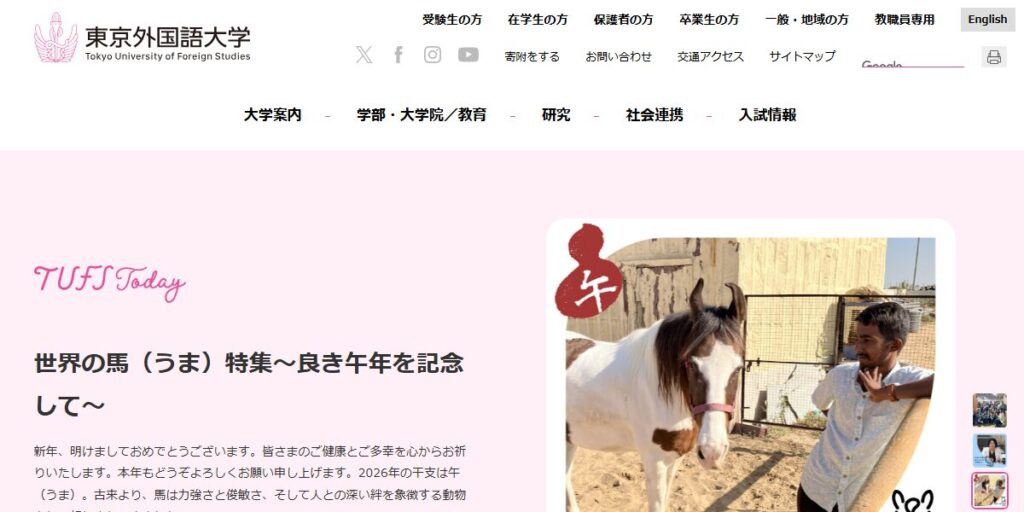 東京外国語大学は、日本を代表する外国語系の国立大学として広く知られています。英語を含む多言語教育を専門とし、言語学・文学・文化研究を通じて高度な専門性を養う教育が特徴です。