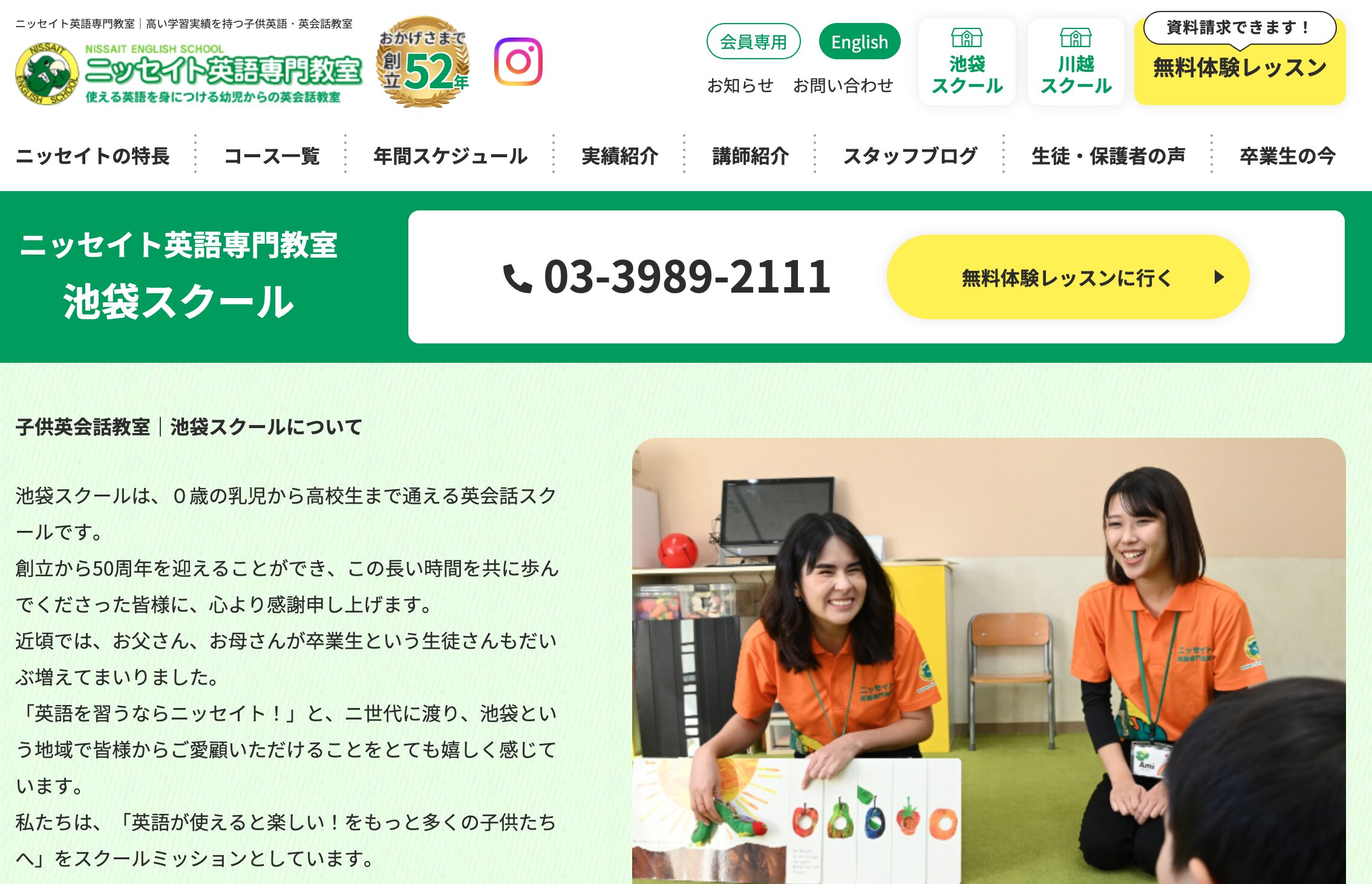 ニッセイトは、子ども専門の英語教室として長年の実績を持つ老舗スクール。池袋スクールは、アットホームな雰囲気で一人ひとりに寄り添った指導が評判です。