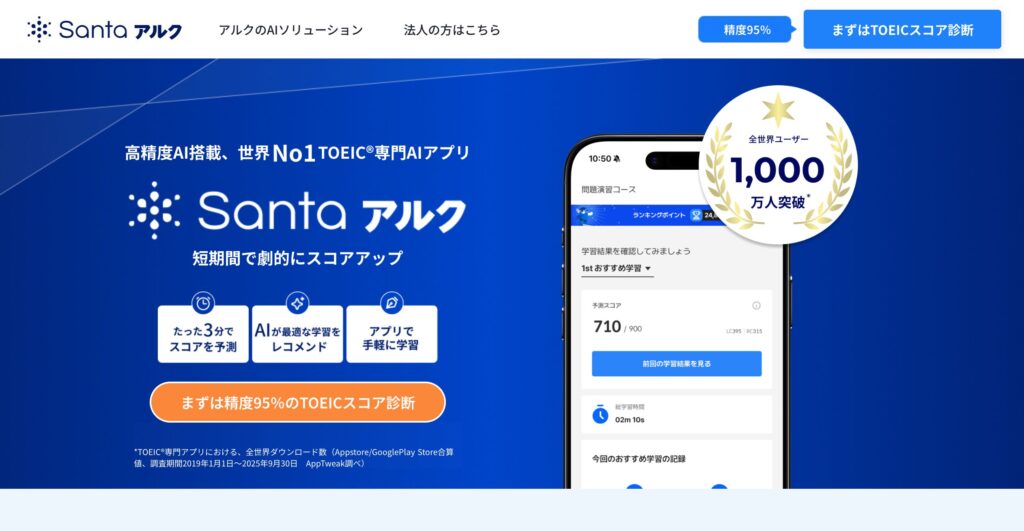 「勉強する時間はあまりないけど、効率的にスコアを上げたい」という人にとって、Santaは最強の味方。AIが「今のあなたに最も必要な問題」だけを厳選して出題するため、無駄な学習時間がゼロになります。