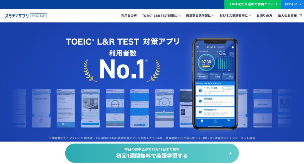 スタディサプリENGLISH TOEIC対策コース|業界No.1の王道アプリ